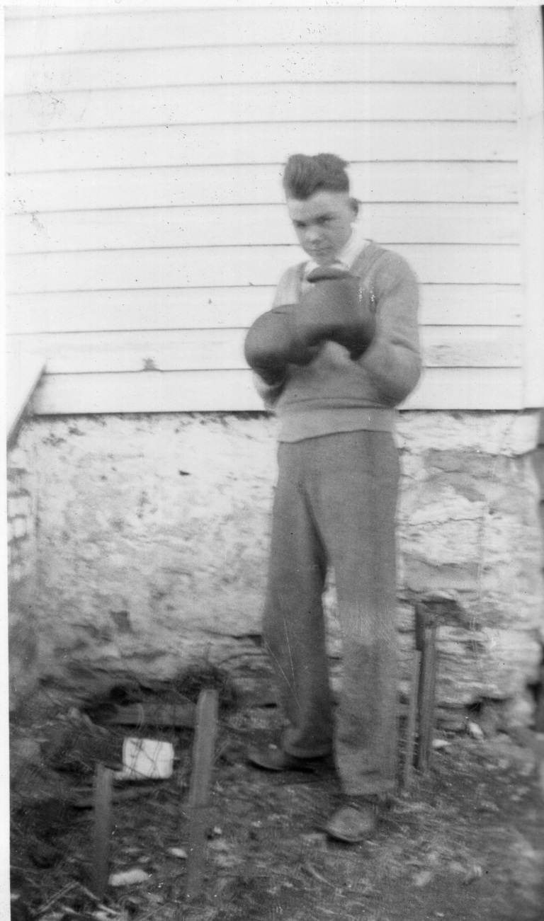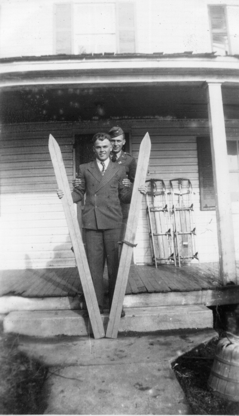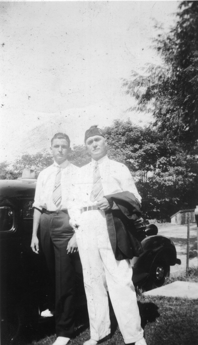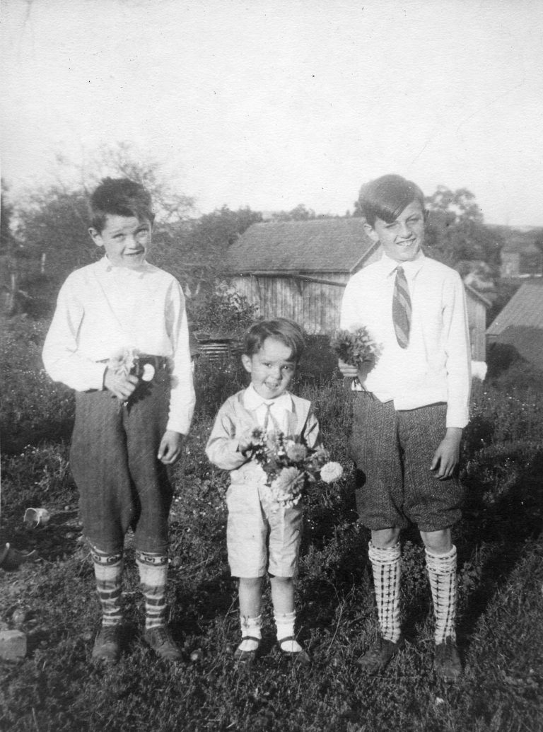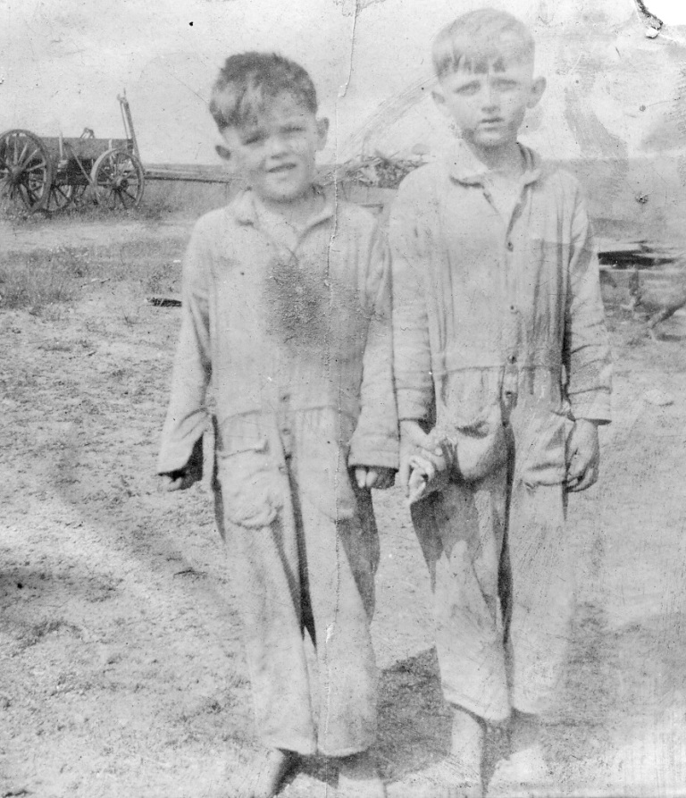 approx 1927. Brothers Stanley and Edward Bollinger Jr. stand to get their picture taken. Moments before this photo was taken, their mother Jeanette Bollinger gave the rag in Edward Jr.’s hand to him to wipe off his little brother’s face with.
