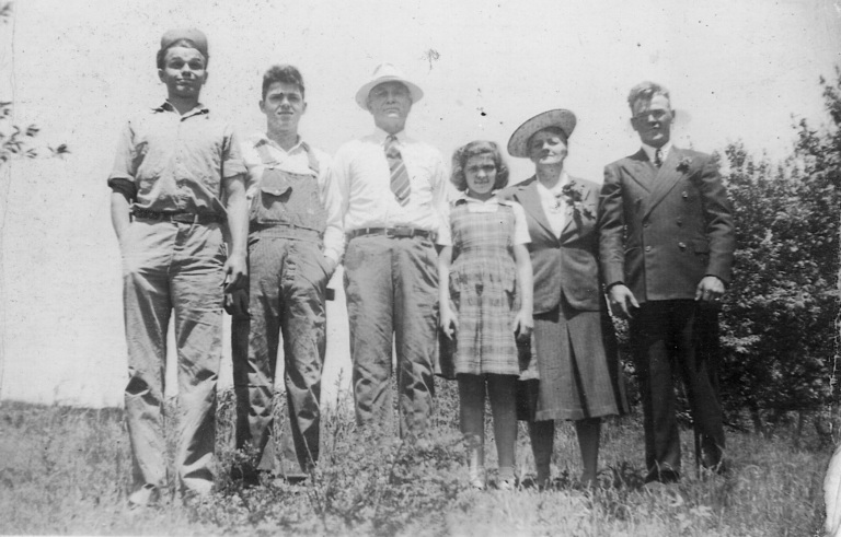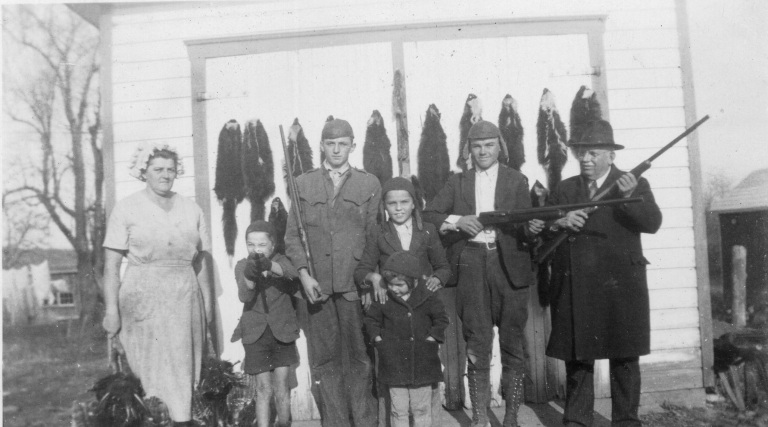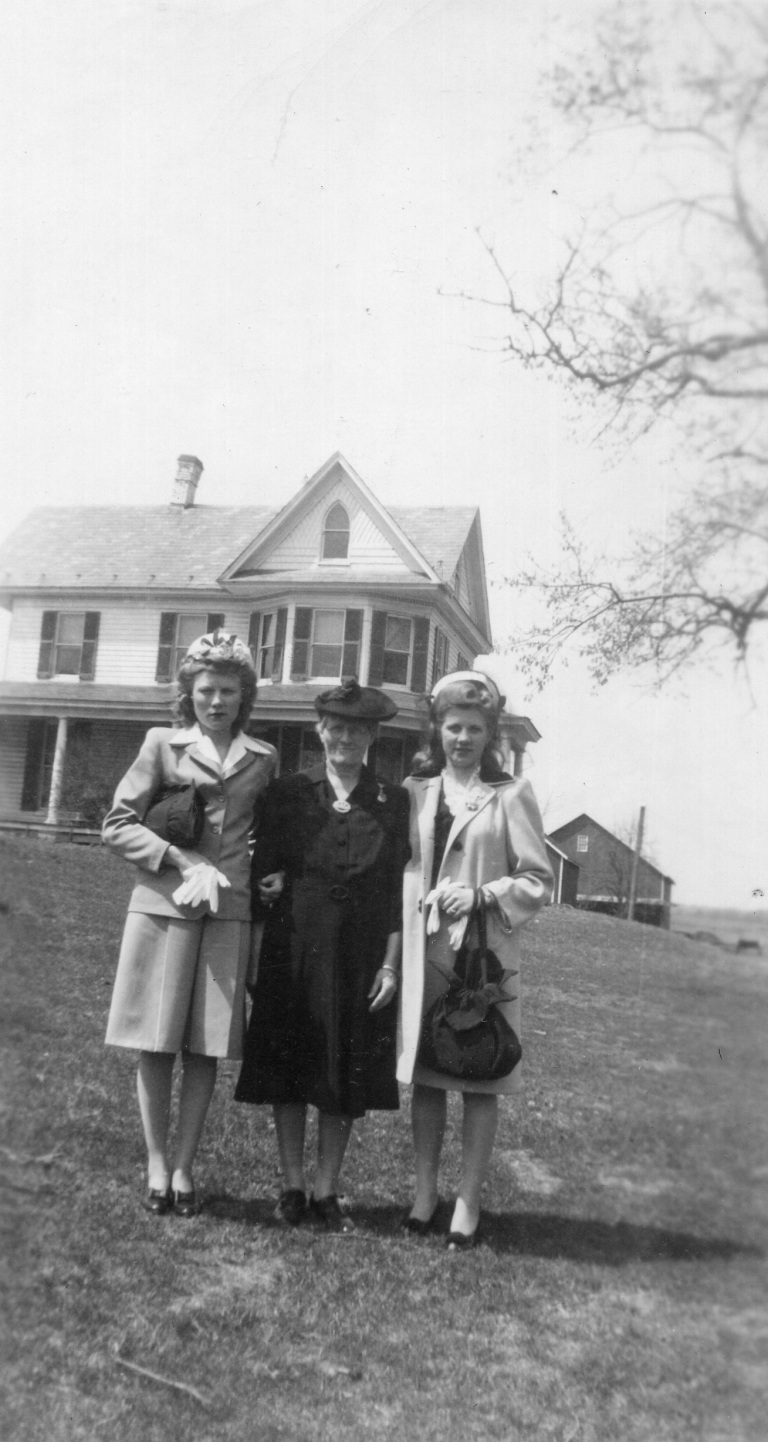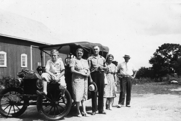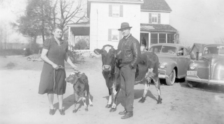 (Pictured left to right) George Monroe Jr and his wife Mary Elizabeth Owings, John, Jeanette, Susie, Myrtle, Gladys, George Monroe Sr., May, Helen, Evelyn, Martha Ellen, and Bertie stand proudly to commemorate their first farm.