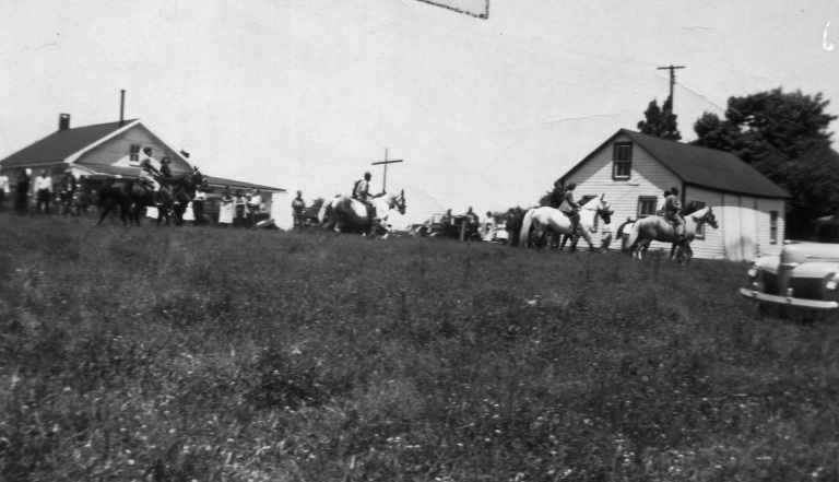 circa 1946. (pictured left to right) Bill and Joan Conaway and Peggy Beall drive the milk wagon on Gordon Conaway Sr.’s farm.