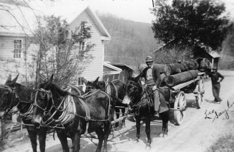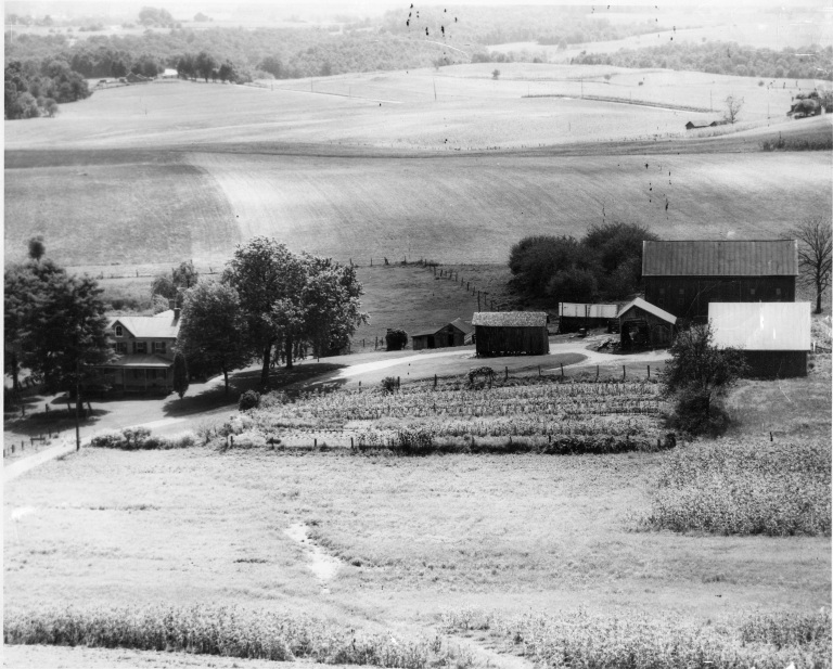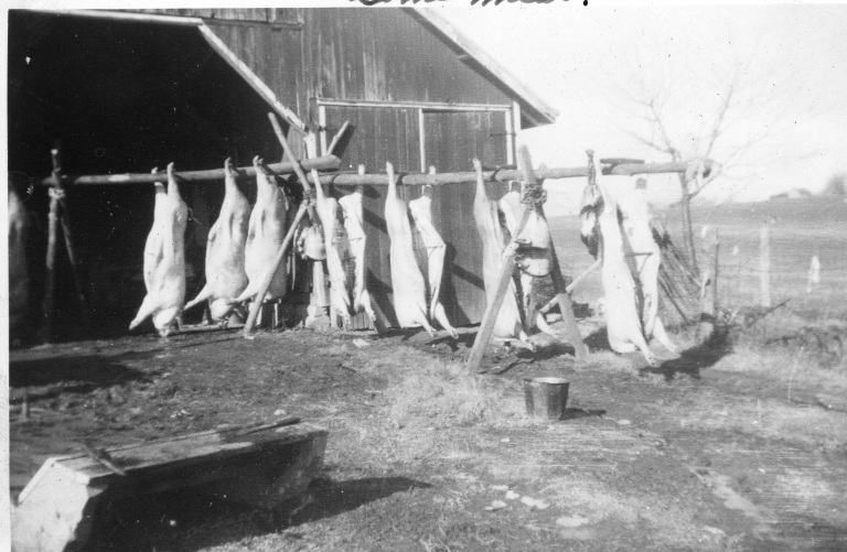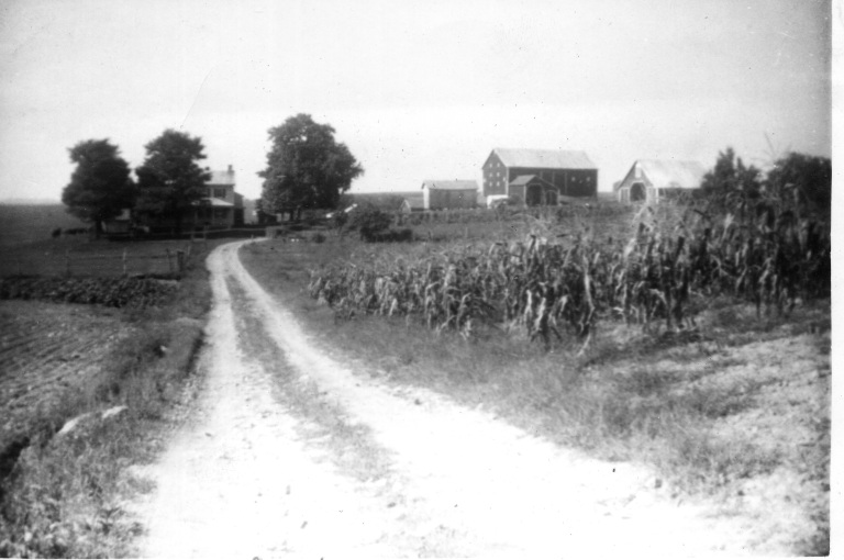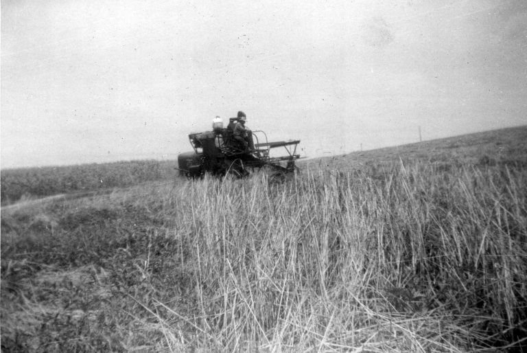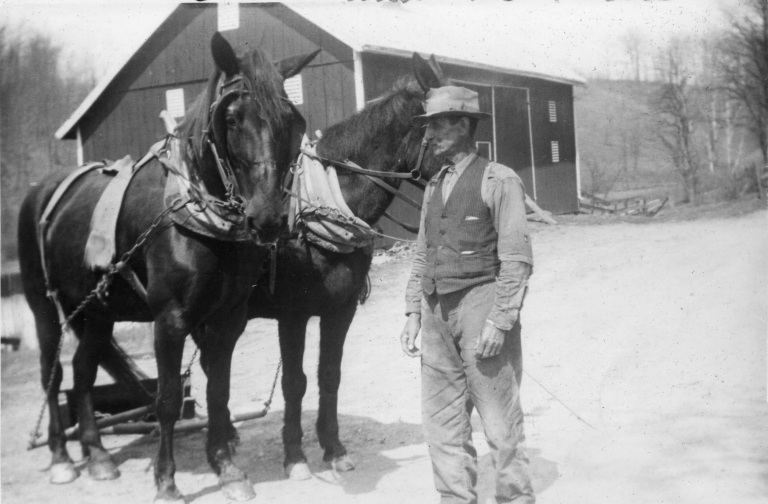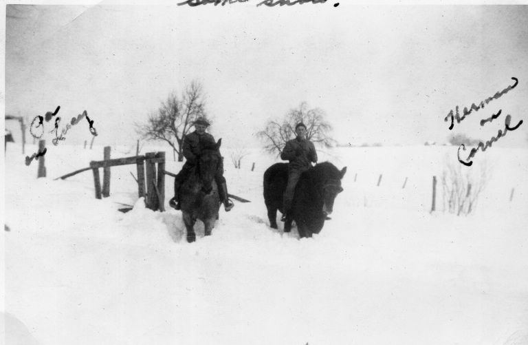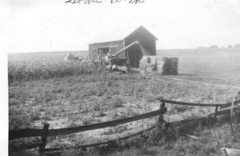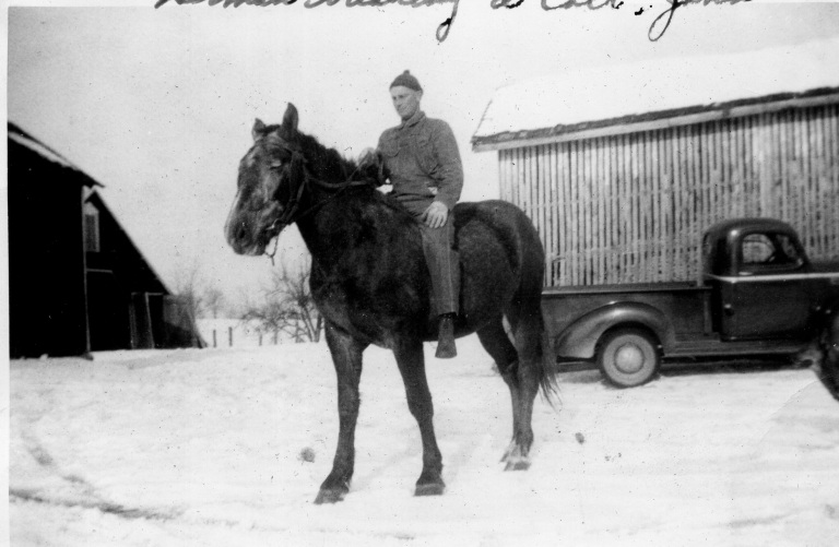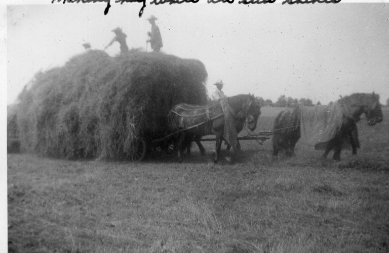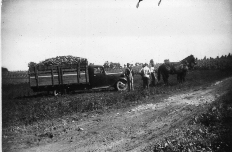 1940. The Hoff Family pulls their truck out of the field thanks to the horses on their Gamber property.