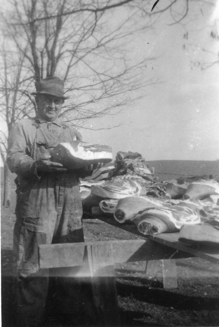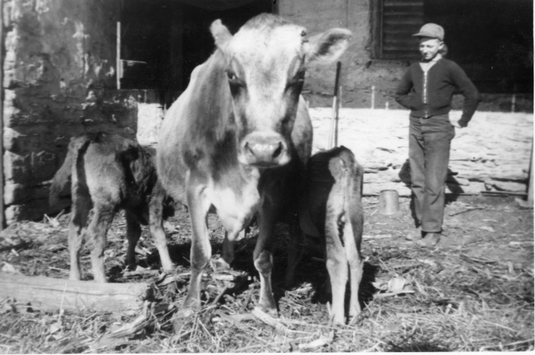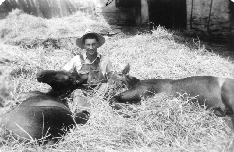 1939. Herman Hoff with a pair of very sleepy rare twin colts.