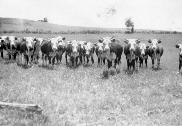 1940. Feeder cattle arrives at Hoke Farm.