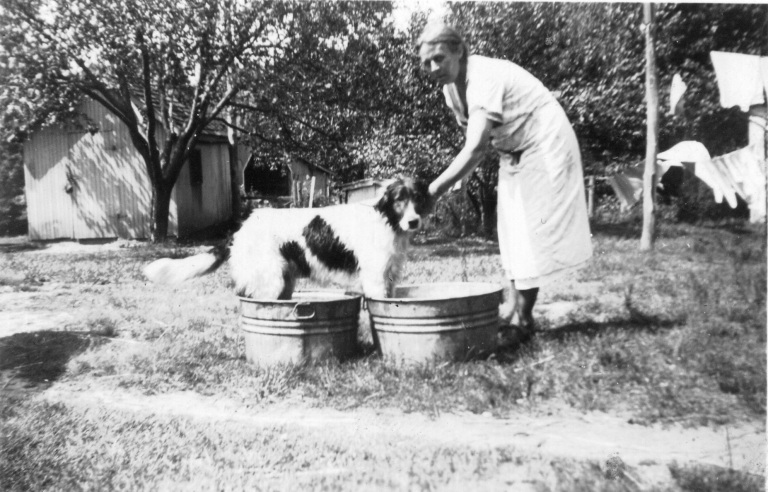 Katharine Hollingsworth washes the family dog at the Hollingsworth family farm in Finksburg.