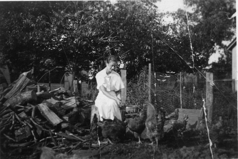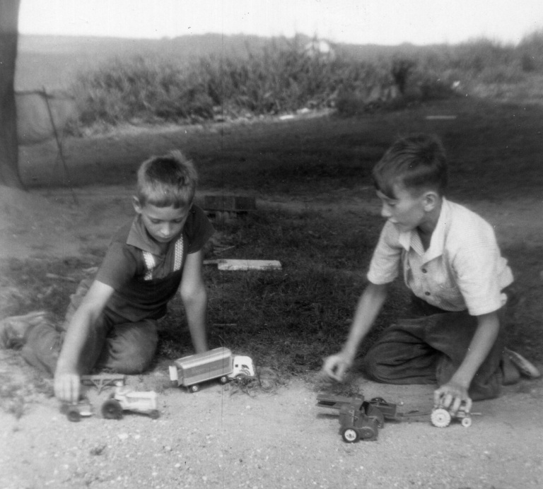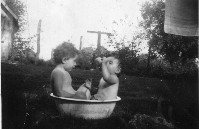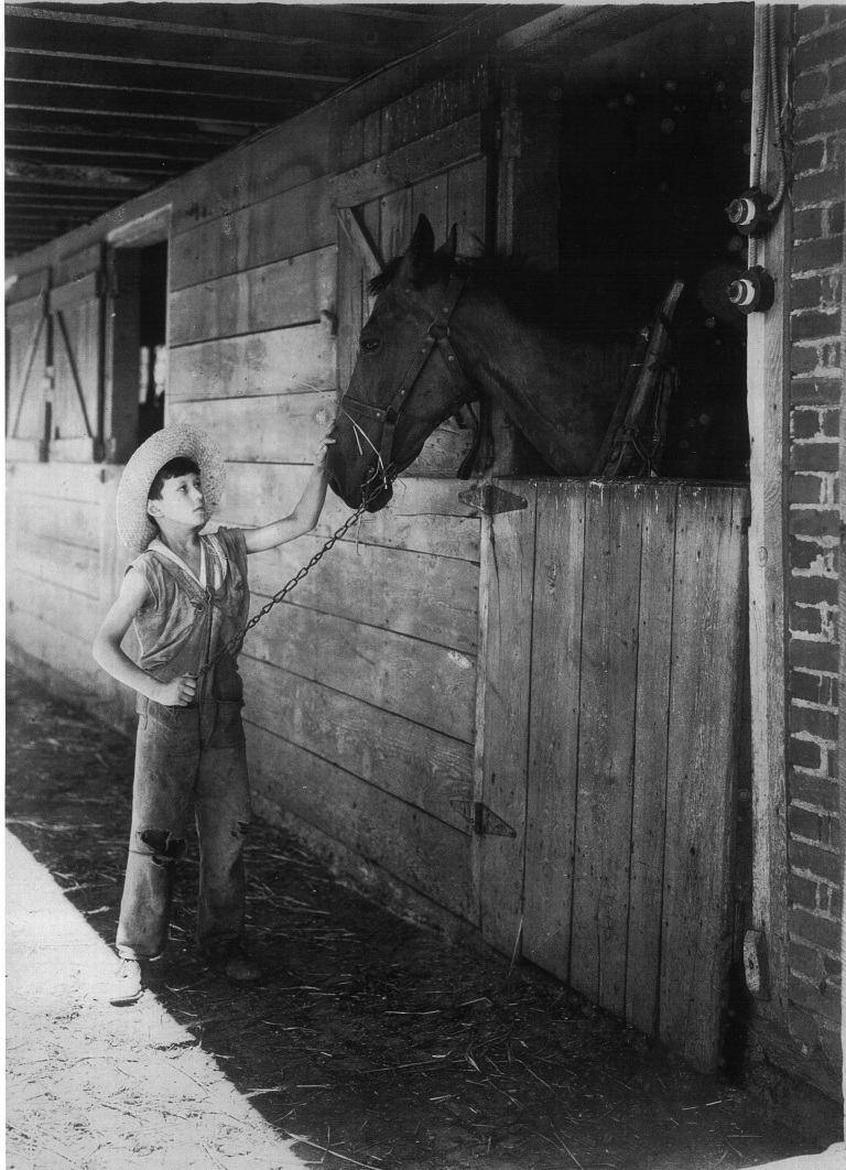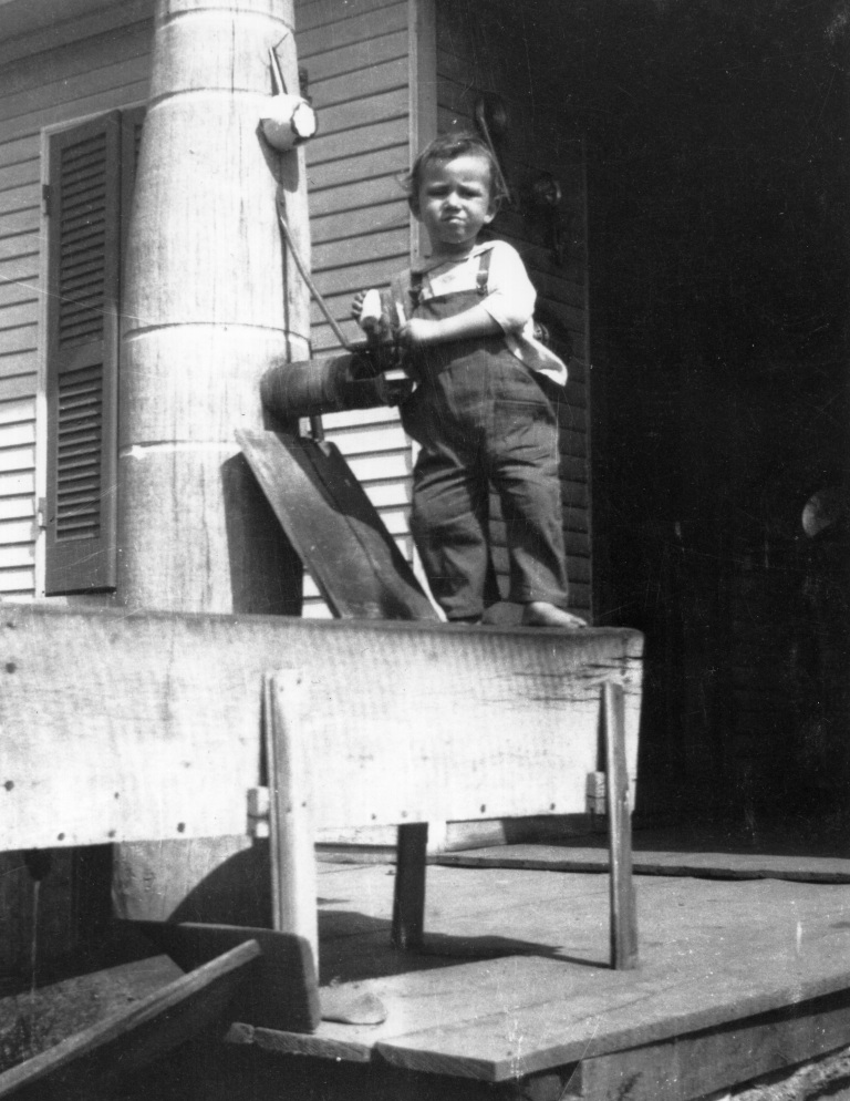 1921. Young Jesse Hollingsworth stands on a Palmer Pump, a type of pump invented by James Palmer of Hampstead in the late 1800s.