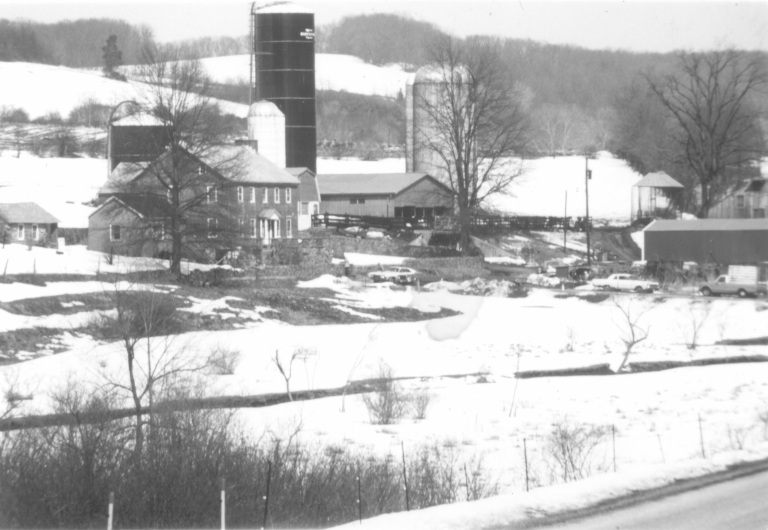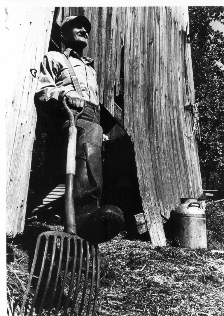 circa the 1950s. Vince Nevius watches his piglets on his dairy farm on Fridinger Mill Road in Manchester.