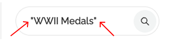 - Quotation Marks: If searching for an exact pair of words such as WWII Medals, for example, put the keyword(s) in quotation marks in the search bar to narrow your results.