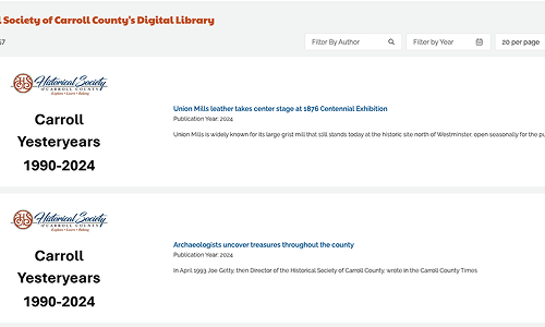 In addition to the online resources found on this Digital Library, the Society’s Library of Carrol County History at 216 E. Main Street in Westminster is the repository of an incredible amount of primary source material to help researchers pursue their historical interests. Some of this material is slated for digitization for the Digital Library. Researchers are strongly encouraged to make an appointment with the HSCC Library by calling 410-848-6494 to access materials not yet digitized.